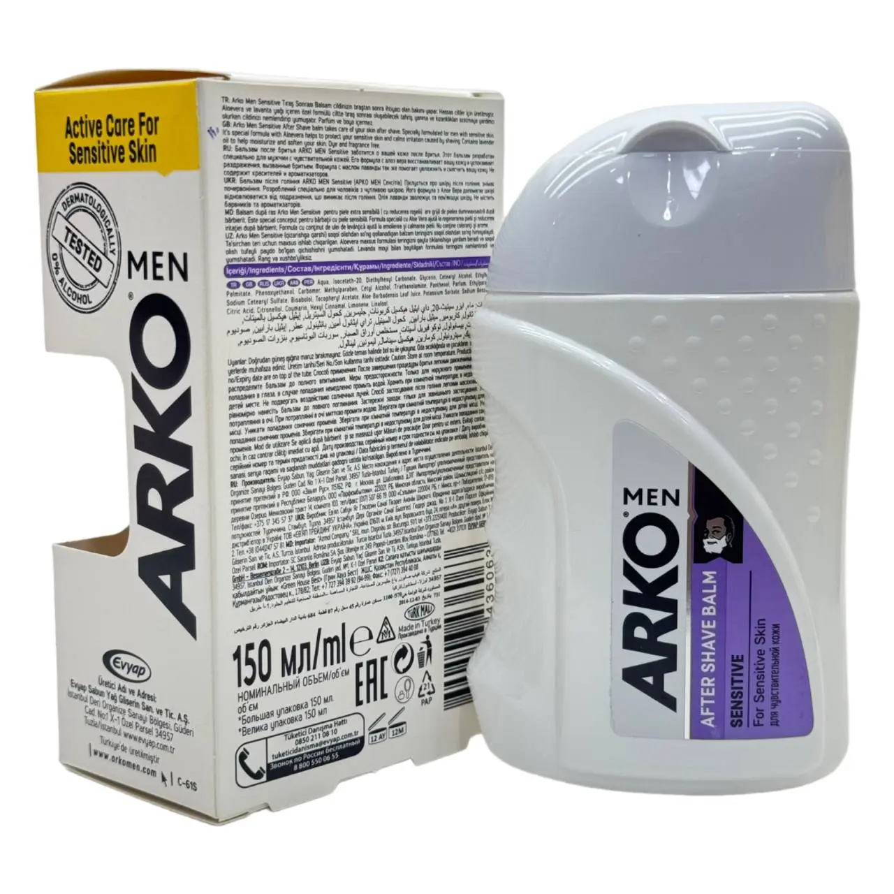 افترشیو بعداصلاح ارکو مدل SENSITIVE مخصوص اقایان مخصوص بعداصلاح صورت مخصوص اقایان مناسب پوست های حساس تسکین دهنده ضدالتهاب ضدقرمزی 150میل ساخت ترکیه خنک کننده صورت جنس محصول کرمی معرف بالم شیوارکو انقضا 2029 ارام بخش پوست های جوش دار جلوگیری از سوزش
