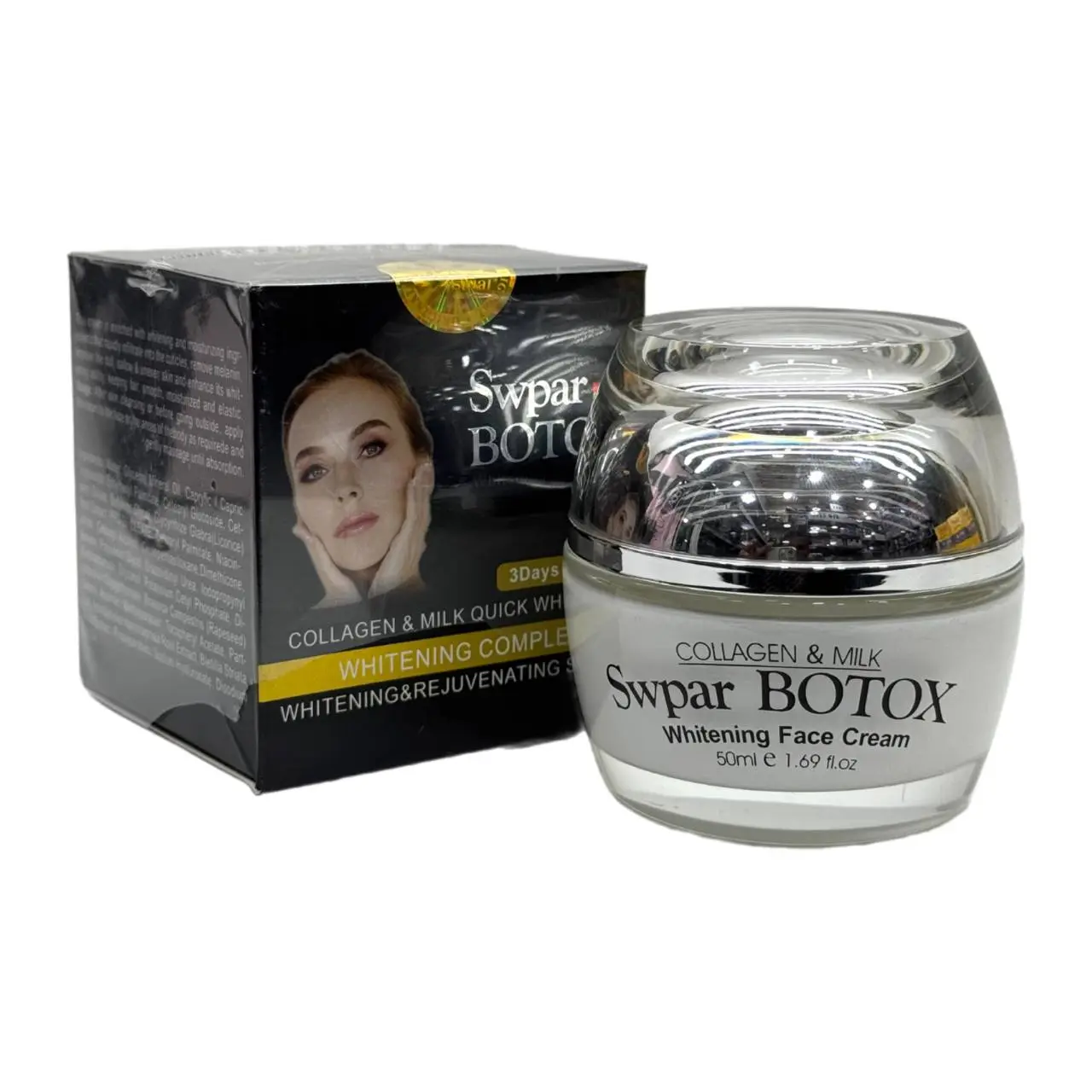 کرم بوتاکس سوپار سفت کننده و سفید کننده صورت روشن کننده فوری حاوی کلاژن طبیعی ترکیب شیر مغذی کاهش لک و تیرگی مناسب انواع پوست آبرسانی عمیق پوست افزایش طراوت و شادابی جذب سریع و آسان ضد کدری و تیرگی رفع خطوط ریز درخشندگی بالا جوانساز پوست مرطوب کننده نرم کننده قوی ساخت آلمان حجم 50 میل انقضا 2028