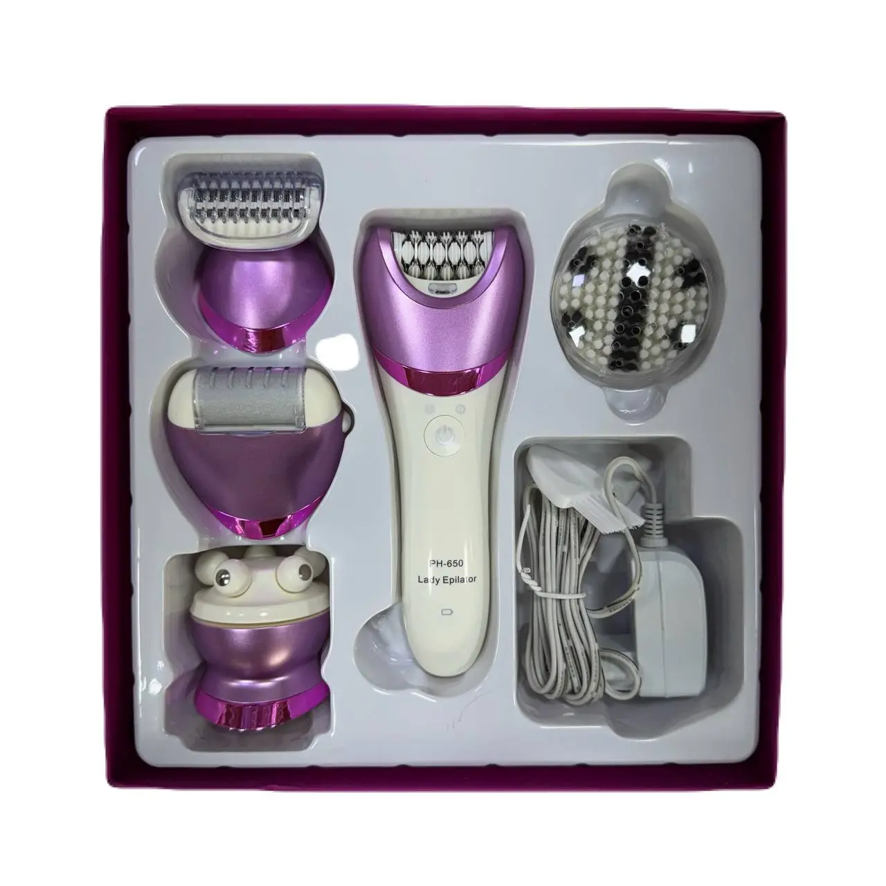 اپلیدی فلیپس هلندی 5 کاره مدل PH_650 5 کاره دارای 5 سری مختلف دارای موکن اپیلاتور سرشیور سری سنگ پا سری ماساژور سری فیس واش موچین از جنس سرامیک ضد زنگه دستگاه ضد اب است شارژی قابل استفاده بابرق زمان شارژ دهی 2 ساعته دارای دو دور سرعت توربو دار دارای شارژر شامل سری اضافه شامل برس تمیز کننده مدل جدید خوش رنگ مناسب استفاده خانگی مناسب کادوی تولد